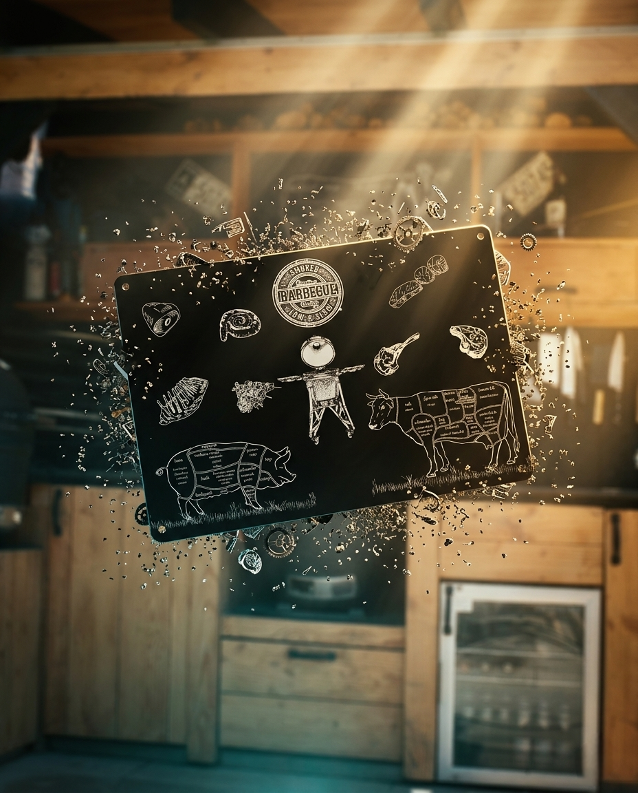 Dit metalen wandbord van 30x20 cm is een perfecte toevoeging aan je buitenkeuken of BBQ-ruimte. Met een afbeelding van een slagers koe en varken, voegt het een vleugje rustieke charme toe aan je buitenruimte. Het bord is gemaakt van metaal, waardoor het bestand is tegen de elementen en geschikt is voor zowel binnen als buiten gebruik.