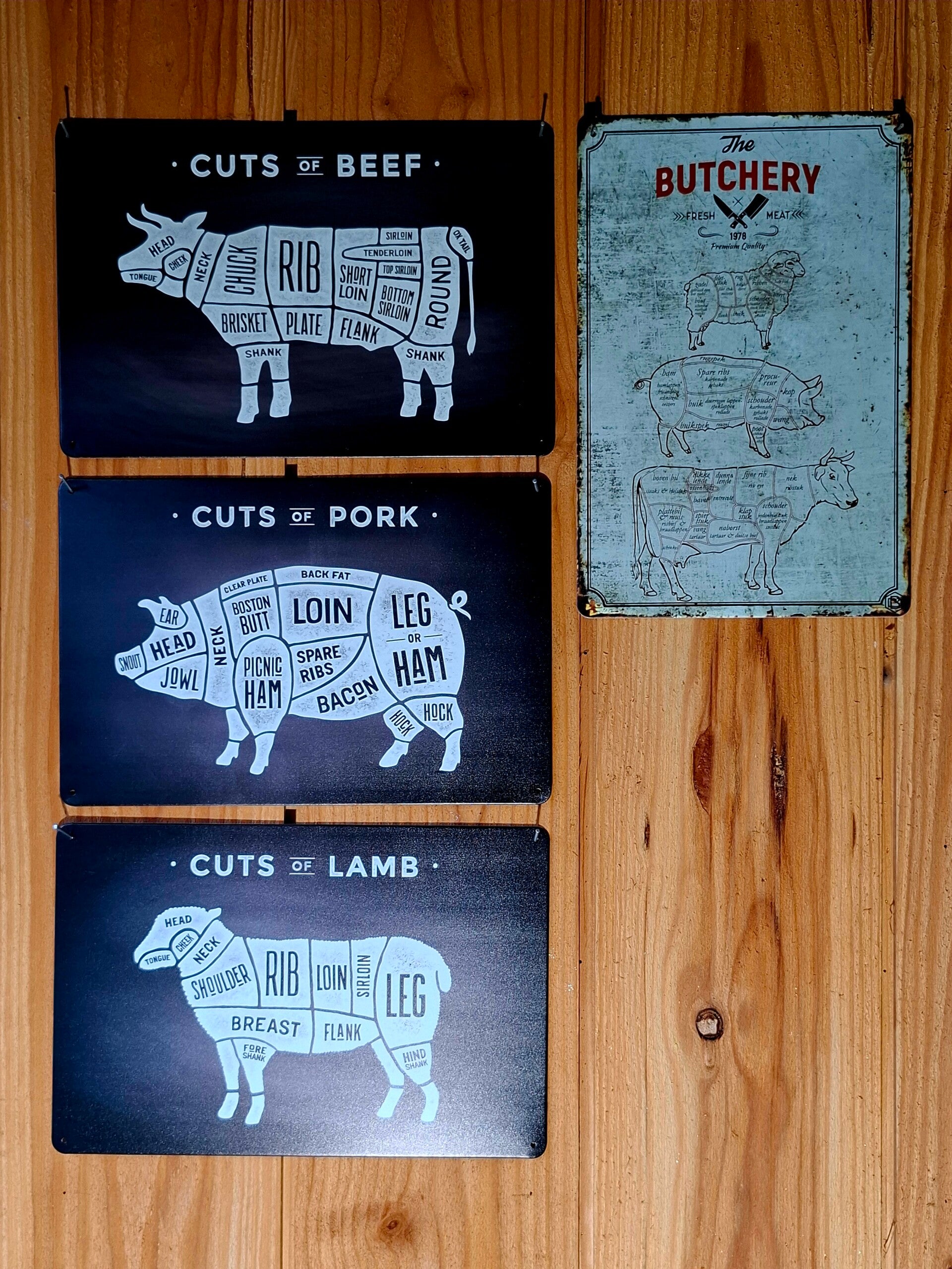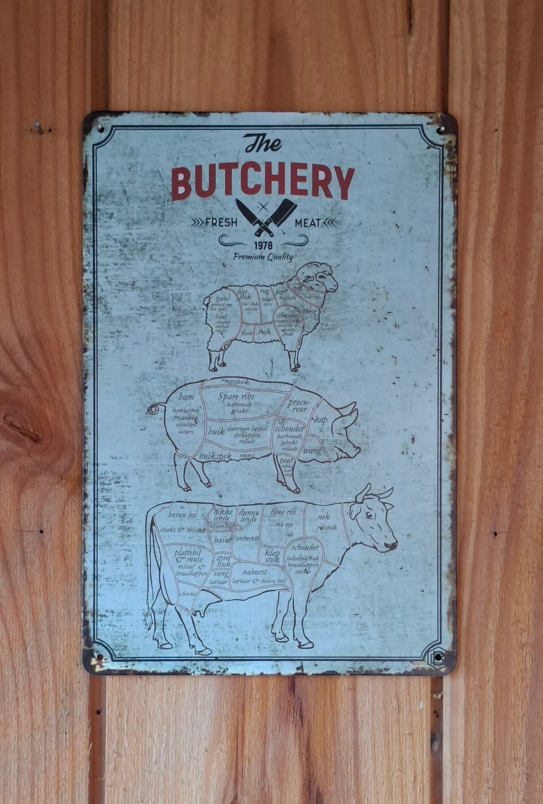 De metalen wandborden van bbq drukwerk is een perfecte toevoeging aan je buitenkeuken, mancave of Barbeque-ruimte. Met een gedetailleerde afbeelding van de technische delen van een koe varken of lam, voegt het een vleugje rustieke charme toe aan je buitenruimte. Het bord is gemaakt van metaal, waardoor het bestand is tegen de elementen en geschikt voor zowel binnen als buiten gebruik. De borden zijn leuk om te krijgen of om te geven met sinterklaas of kerst